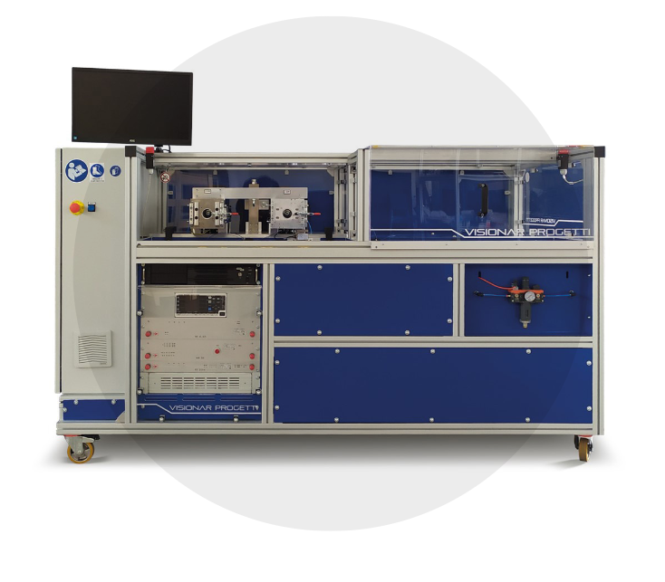 A test bench equipped with a double test station with a trasmission system ad a 4- quadratnt motor/brake control that allows you to test a wide range of torque and speed and a measurement system that integrates, in addition to performance tests, those of safety electric and vibrations.